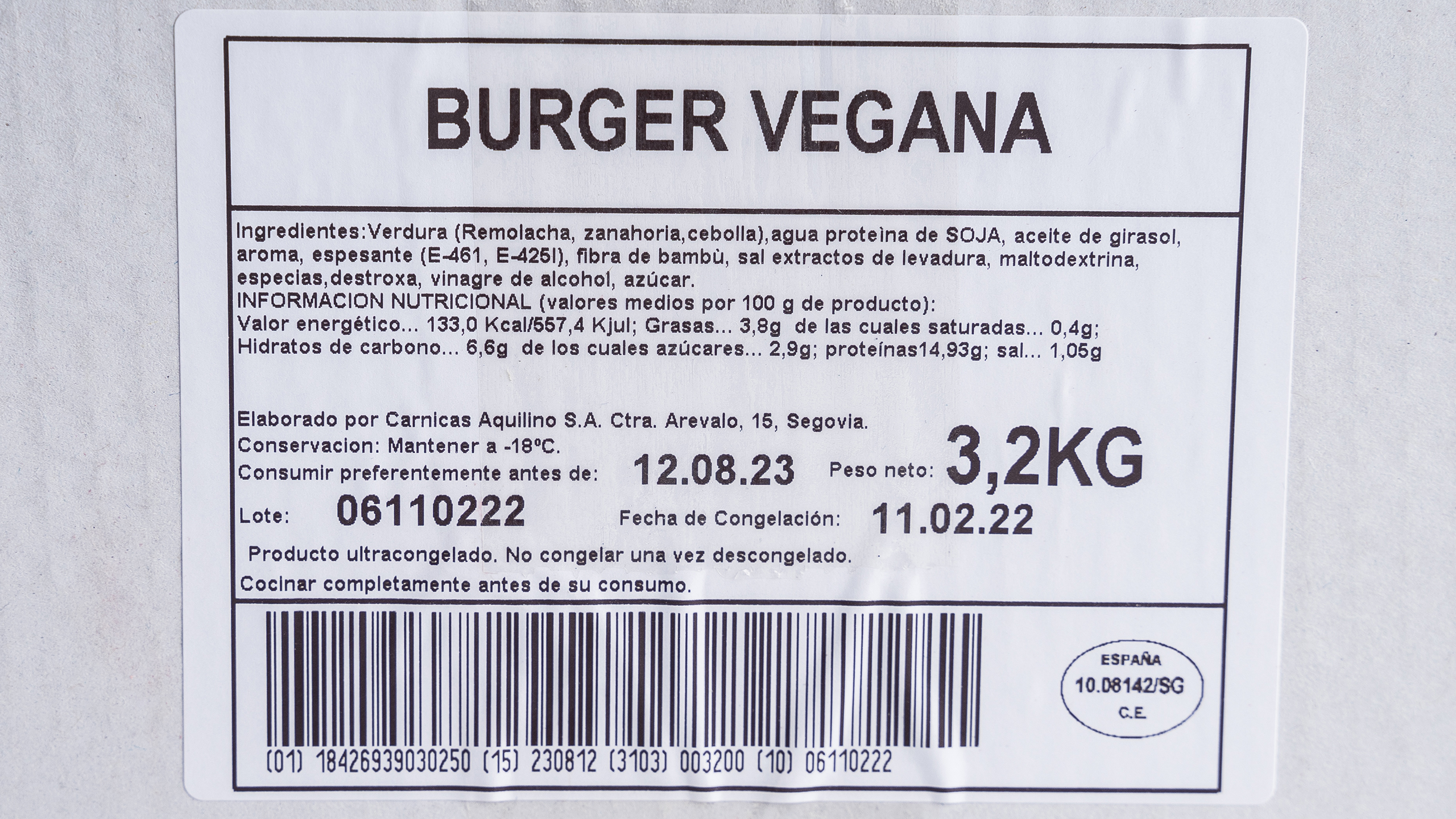 BURGUER VEGANA AQUILINO 100 GR 32 UD (CONG)